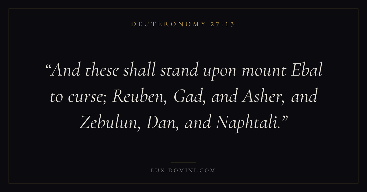 And these shall stand upon mount Ebal to curse; Reuben, Gad, and Asher, and Zebulun, Dan, and Naphtali.