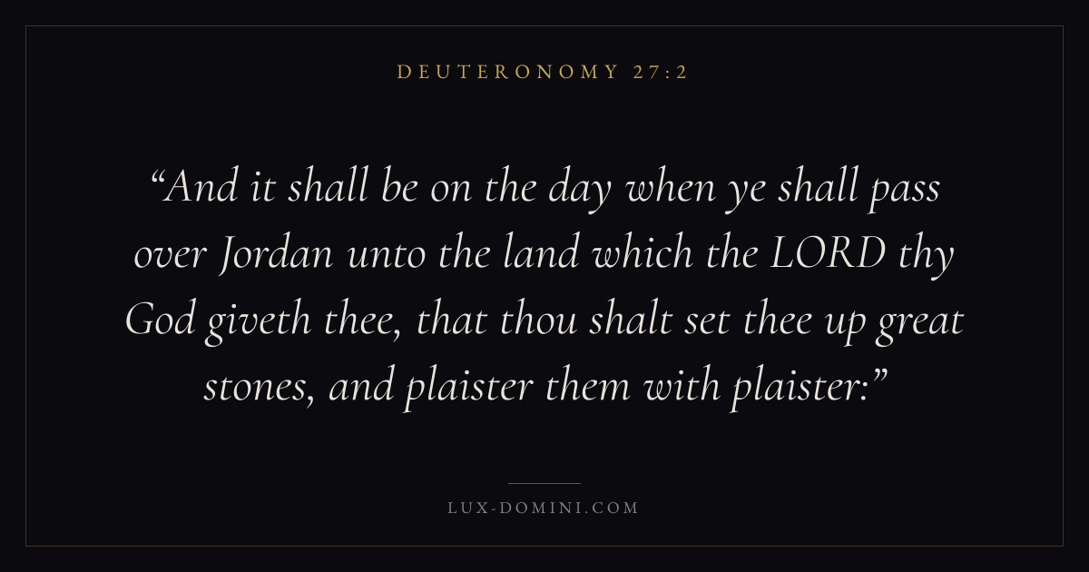 And it shall be on the day when ye shall pass over Jordan unto the land which the LORD thy God giveth thee, that thou shalt set thee up great stones, and plaister them with plaister: