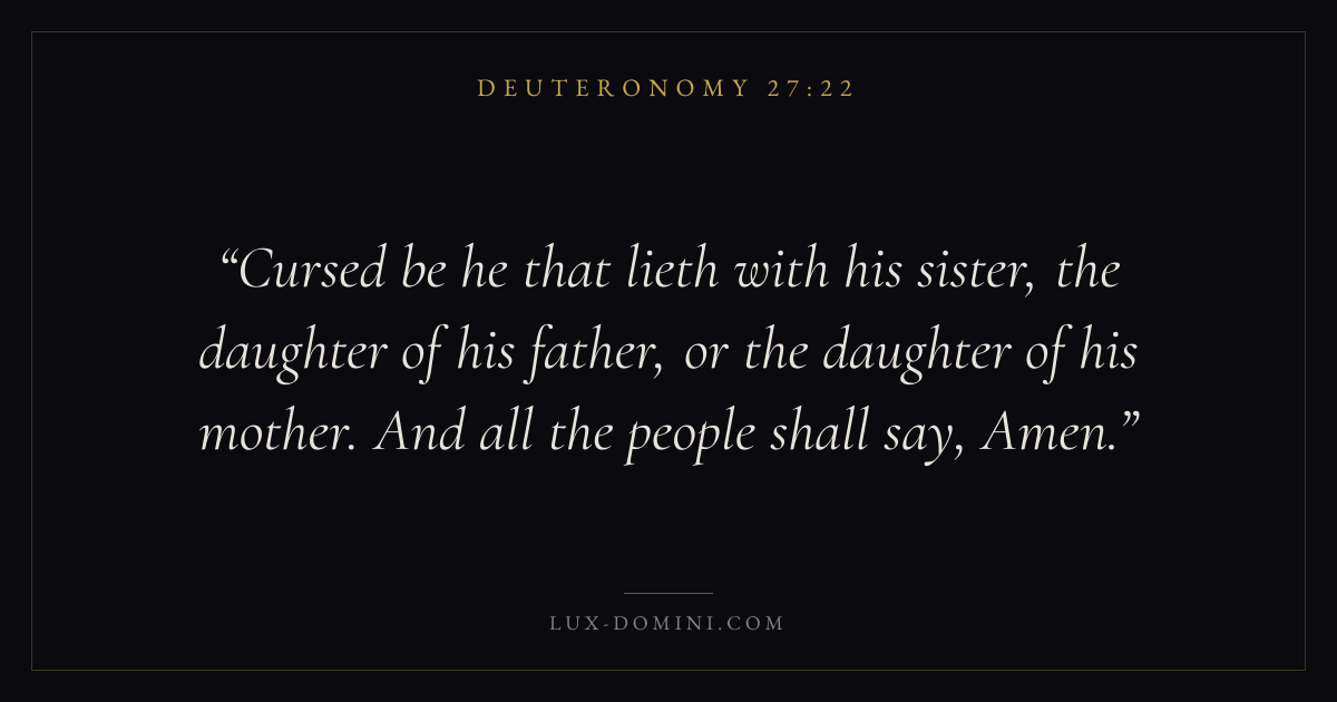 Cursed be he that lieth with his sister, the daughter of his father, or the daughter of his mother. And all the people shall say, Amen.