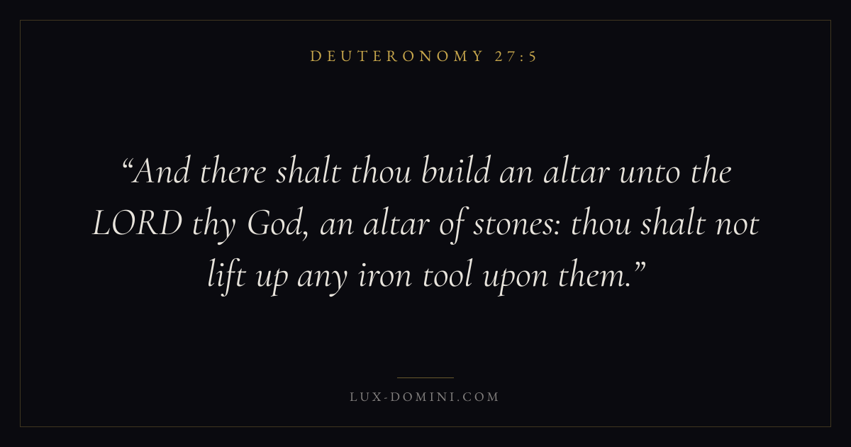 And there shalt thou build an altar unto the LORD thy God, an altar of stones: thou shalt not lift up any iron tool upon them.