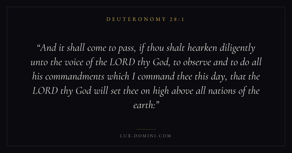 And it shall come to pass, if thou shalt hearken diligently unto the voice of the LORD thy God, to observe and to do all his commandments which I command thee this day, that the LORD thy God will set thee on high above all nations of the earth: