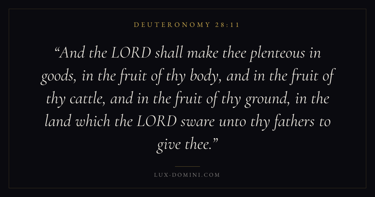 And the LORD shall make thee plenteous in goods, in the fruit of thy body, and in the fruit of thy cattle, and in the fruit of thy ground, in the land which the LORD sware unto thy fathers to give thee.