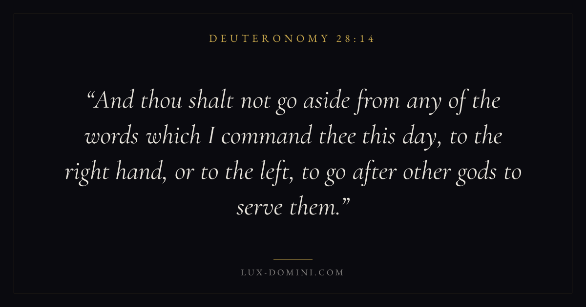 And thou shalt not go aside from any of the words which I command thee this day, to the right hand, or to the left, to go after other gods to serve them.