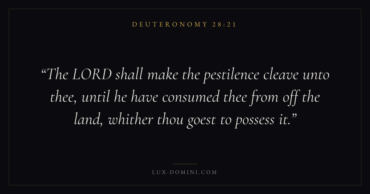 The LORD shall make the pestilence cleave unto thee, until he have consumed thee from off the land, whither thou goest to possess it.