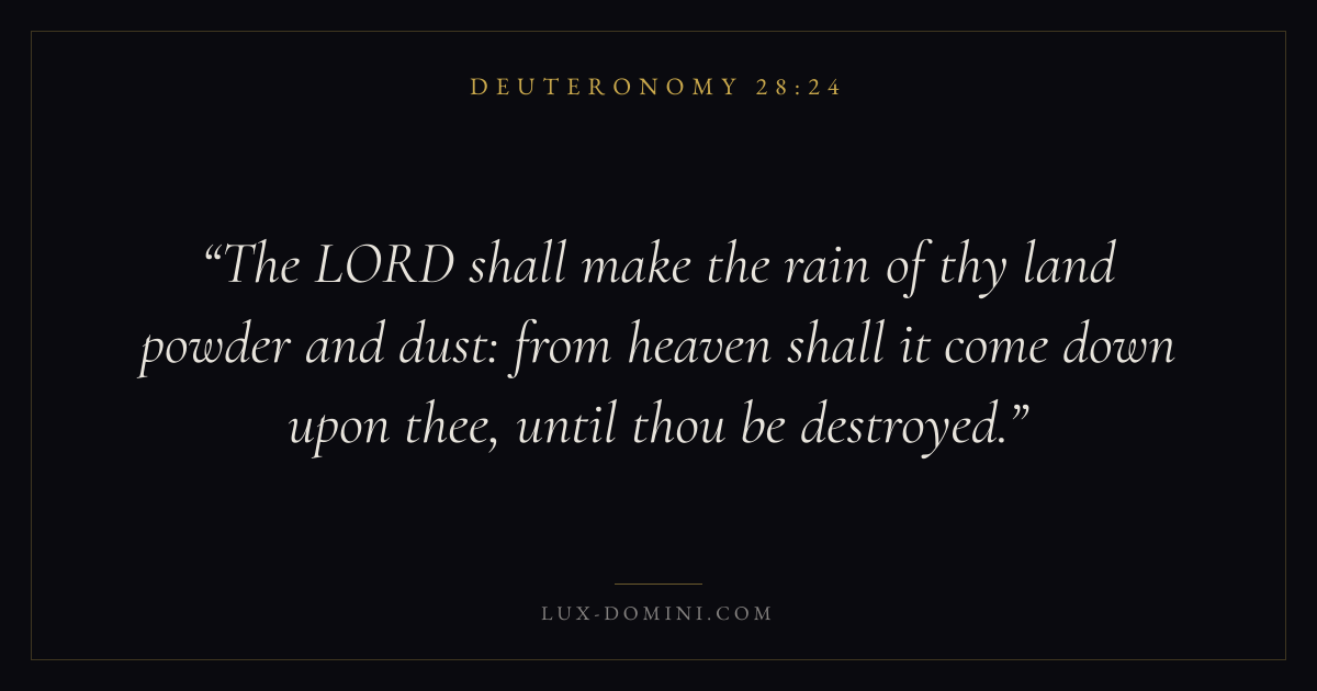 The LORD shall make the rain of thy land powder and dust: from heaven shall it come down upon thee, until thou be destroyed.