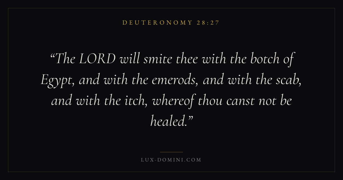 The LORD will smite thee with the botch of Egypt, and with the emerods, and with the scab, and with the itch, whereof thou canst not be healed.