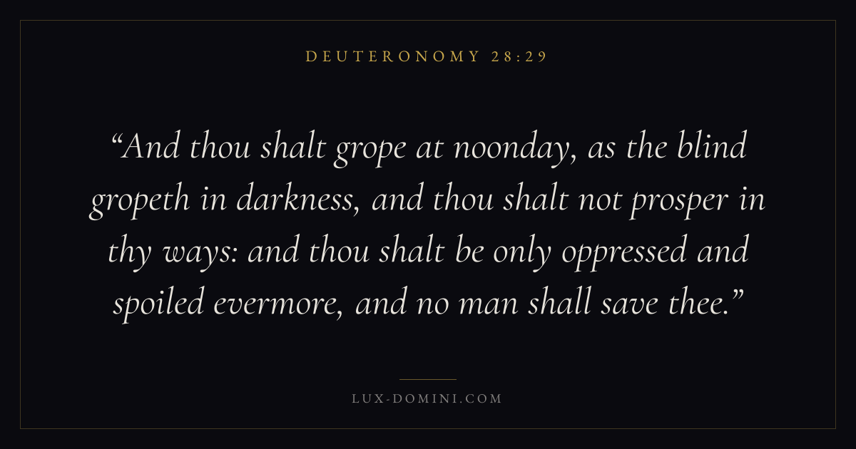 And thou shalt grope at noonday, as the blind gropeth in darkness, and thou shalt not prosper in thy ways: and thou shalt be only oppressed and spoiled evermore, and no man shall save thee.