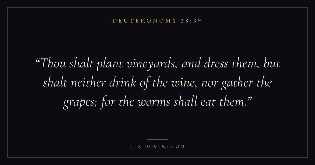 Thou shalt plant vineyards, and dress them, but shalt neither drink of the wine, nor gather the grapes; for the worms shall eat them.