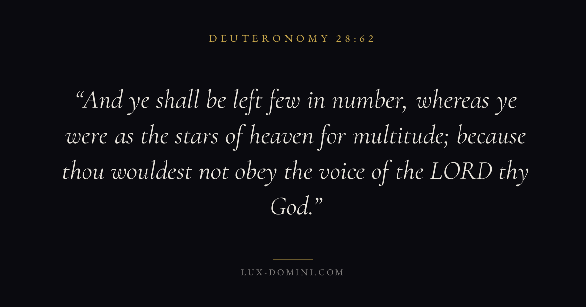 And ye shall be left few in number, whereas ye were as the stars of heaven for multitude; because thou wouldest not obey the voice of the LORD thy God.