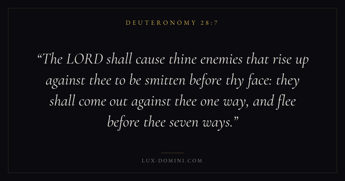The LORD shall cause thine enemies that rise up against thee to be smitten before thy face: they shall come out against thee one way, and flee before thee seven ways.