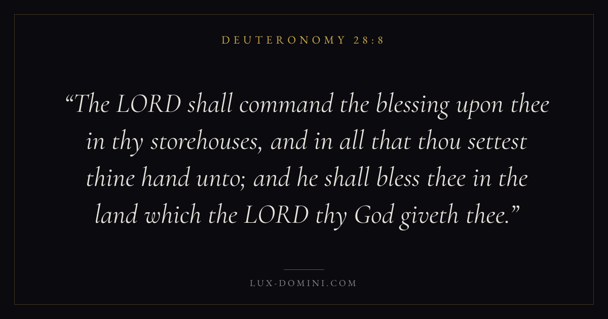 The LORD shall command the blessing upon thee in thy storehouses, and in all that thou settest thine hand unto; and he shall bless thee in the land which the LORD thy God giveth thee.