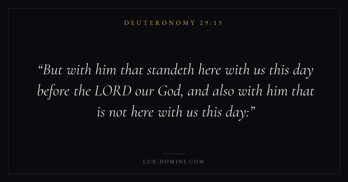 But with him that standeth here with us this day before the LORD our God, and also with him that is not here with us this day: