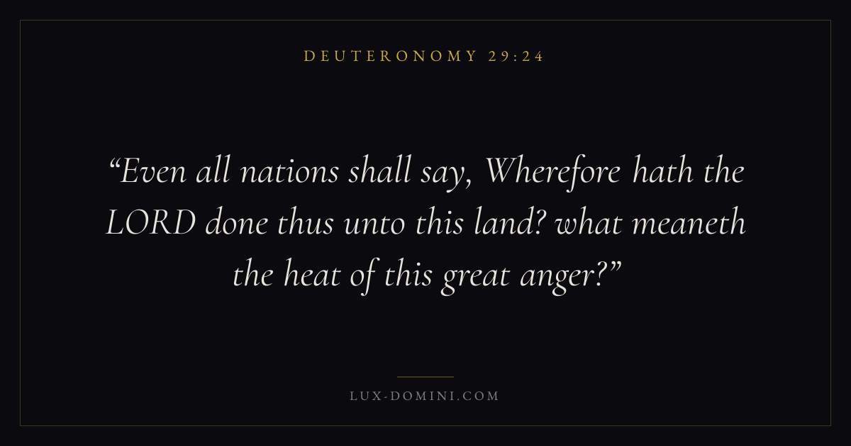 Even all nations shall say, Wherefore hath the LORD done thus unto this land? what meaneth the heat of this great anger?