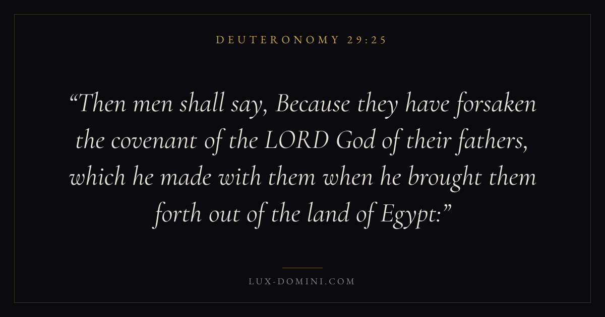 Then men shall say, Because they have forsaken the covenant of the LORD God of their fathers, which he made with them when he brought them forth out of the land of Egypt: