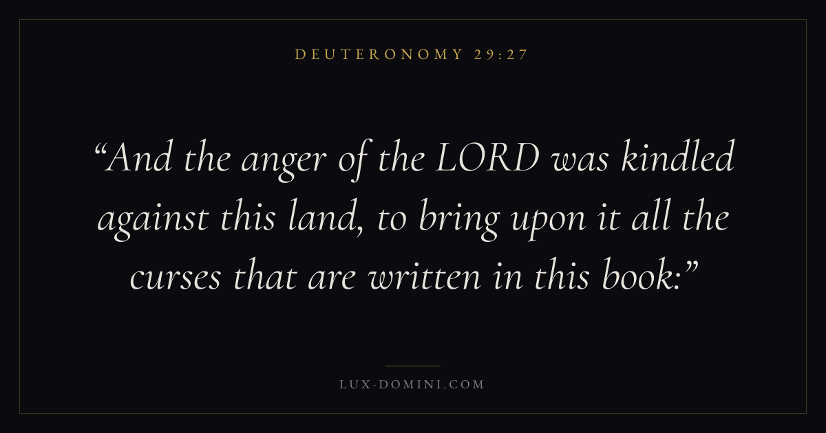 And the anger of the LORD was kindled against this land, to bring upon it all the curses that are written in this book: