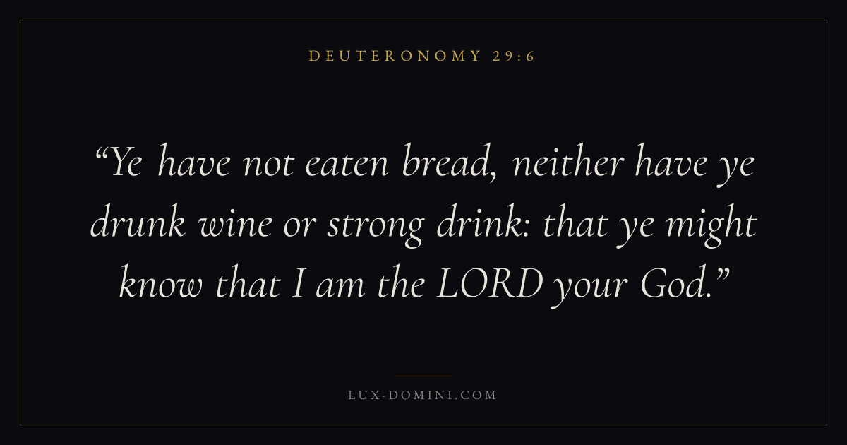 Ye have not eaten bread, neither have ye drunk wine or strong drink: that ye might know that I am the LORD your God.