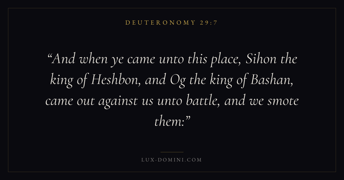 And when ye came unto this place, Sihon the king of Heshbon, and Og the king of Bashan, came out against us unto battle, and we smote them:
