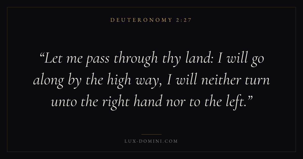 Let me pass through thy land: I will go along by the high way, I will neither turn unto the right hand nor to the left.