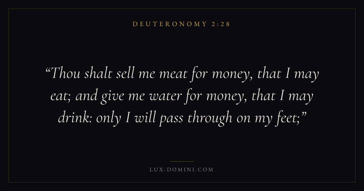 Thou shalt sell me meat for money, that I may eat; and give me water for money, that I may drink: only I will pass through on my feet;