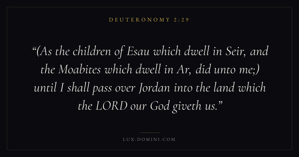 (As the children of Esau which dwell in Seir, and the Moabites which dwell in Ar, did unto me;) until I shall pass over Jordan into the land which the LORD our God giveth us.