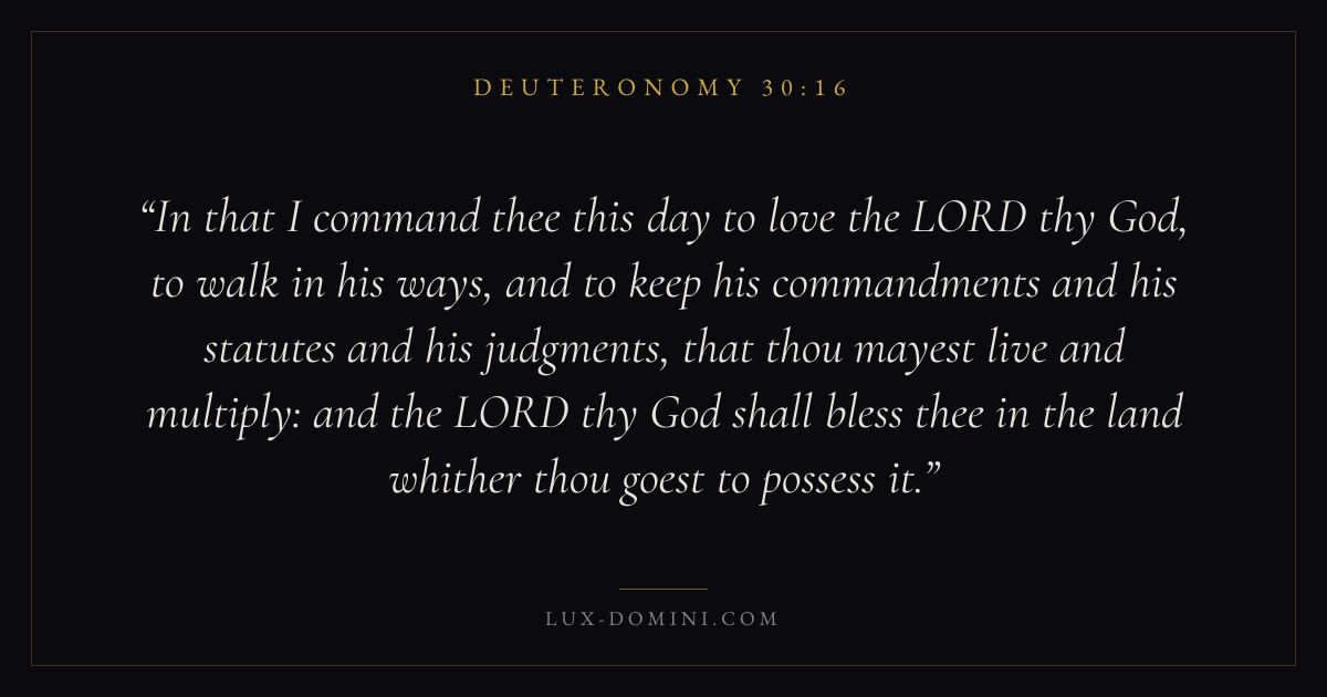 In that I command thee this day to love the LORD thy God, to walk in his ways, and to keep his commandments and his statutes and his judgments, that thou mayest live and multiply: and the LORD thy God shall bless thee in the land whither thou goest to possess it.