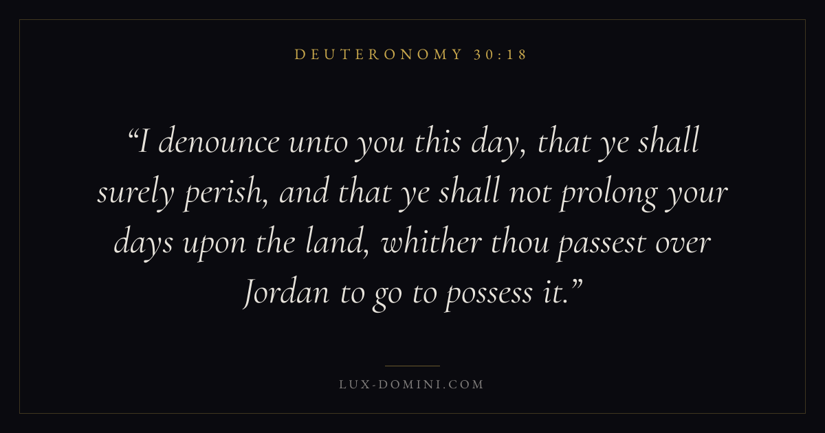 I denounce unto you this day, that ye shall surely perish, and that ye shall not prolong your days upon the land, whither thou passest over Jordan to go to possess it.