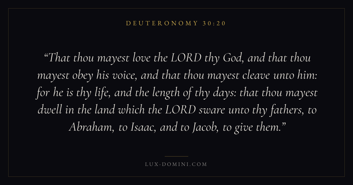 That thou mayest love the LORD thy God, and that thou mayest obey his voice, and that thou mayest cleave unto him: for he is thy life, and the length of thy days: that thou mayest dwell in the land which the LORD sware unto thy fathers, to Abraham, to Isaac, and to Jacob, to give them.