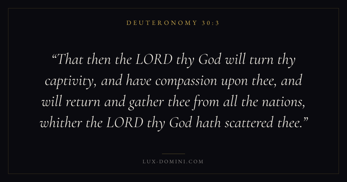 That then the LORD thy God will turn thy captivity, and have compassion upon thee, and will return and gather thee from all the nations, whither the LORD thy God hath scattered thee.
