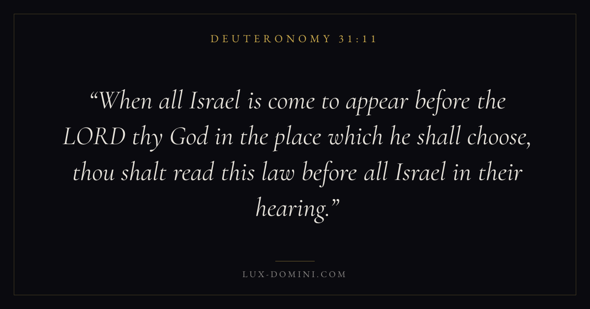 When all Israel is come to appear before the LORD thy God in the place which he shall choose, thou shalt read this law before all Israel in their hearing.