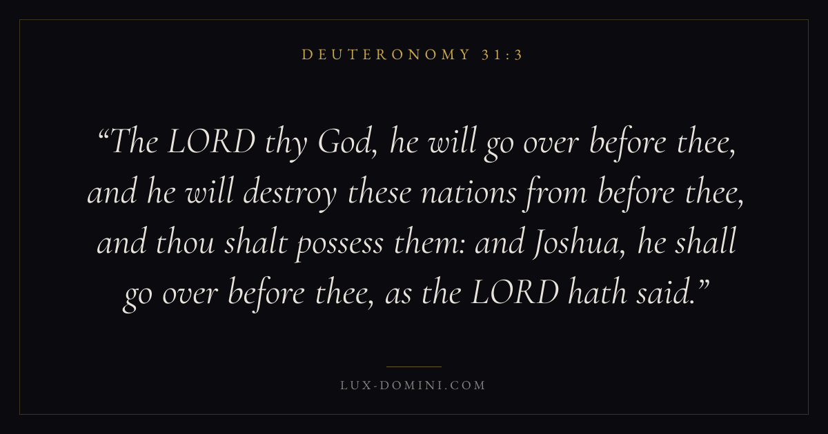 The LORD thy God, he will go over before thee, and he will destroy these nations from before thee, and thou shalt possess them: and Joshua, he shall go over before thee, as the LORD hath said.