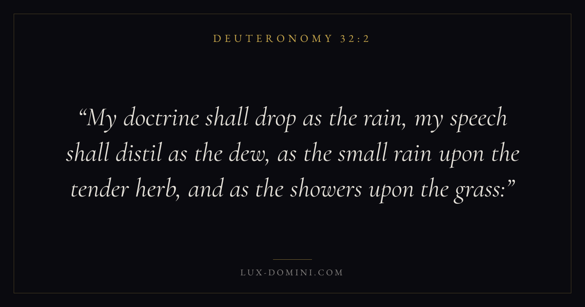 My doctrine shall drop as the rain, my speech shall distil as the dew, as the small rain upon the tender herb, and as the showers upon the grass: