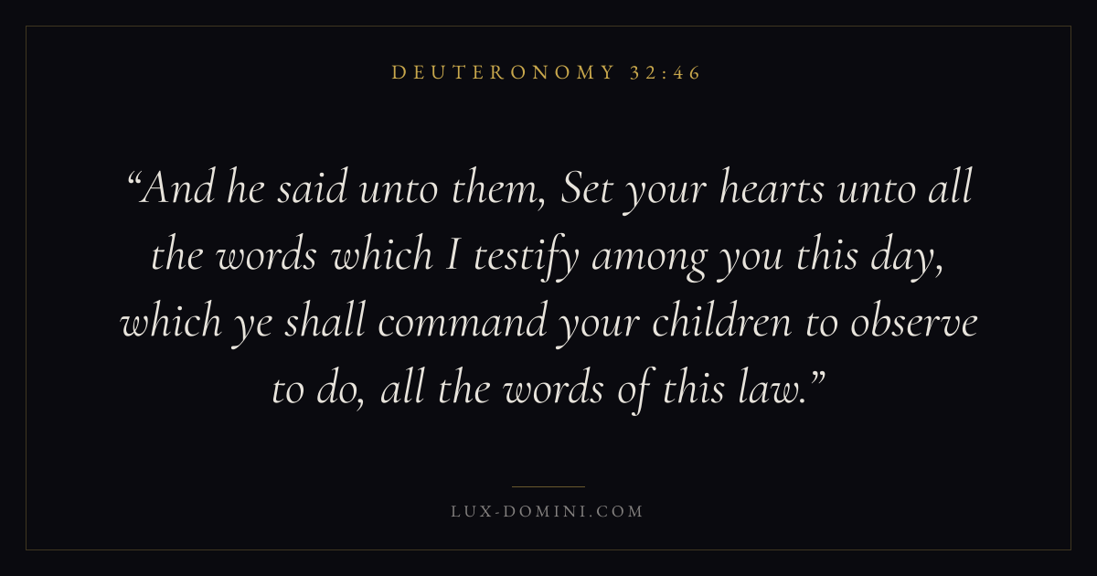 And he said unto them, Set your hearts unto all the words which I testify among you this day, which ye shall command your children to observe to do, all the words of this law.