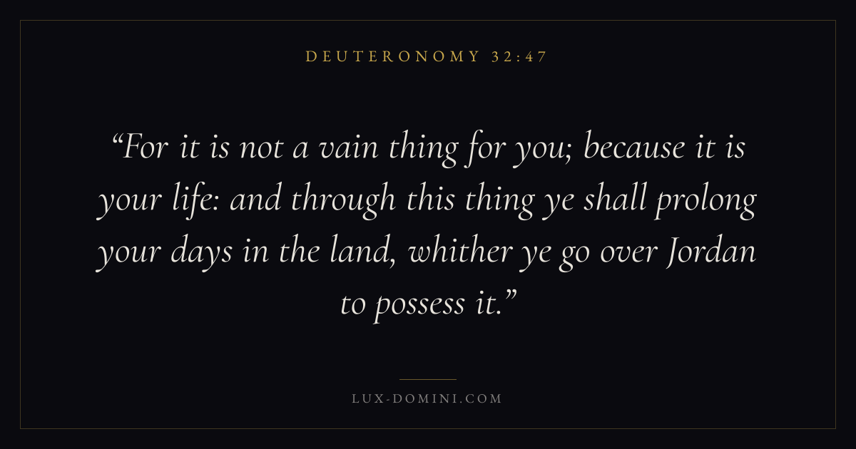 For it is not a vain thing for you; because it is your life: and through this thing ye shall prolong your days in the land, whither ye go over Jordan to possess it.