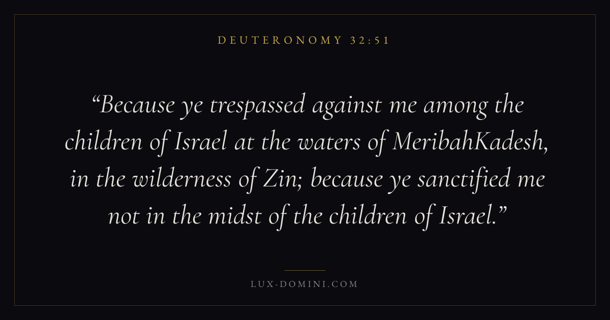 Because ye trespassed against me among the children of Israel at the waters of MeribahKadesh, in the wilderness of Zin; because ye sanctified me not in the midst of the children of Israel.