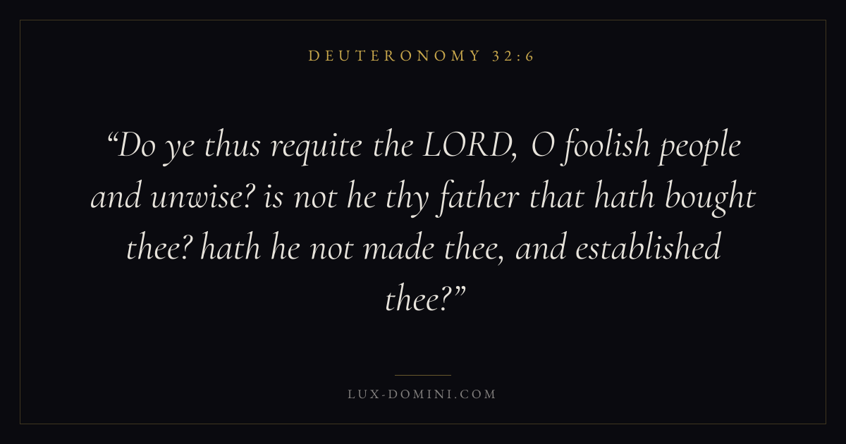 Do ye thus requite the LORD, O foolish people and unwise? is not he thy father that hath bought thee? hath he not made thee, and established thee?