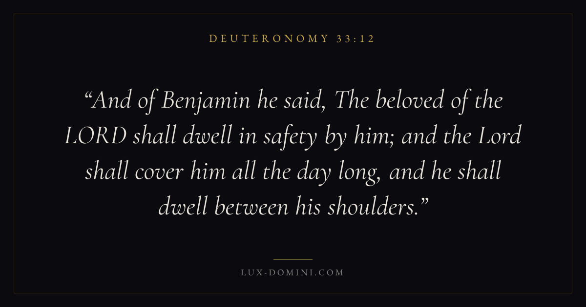 And of Benjamin he said, The beloved of the LORD shall dwell in safety by him; and the Lord shall cover him all the day long, and he shall dwell between his shoulders.