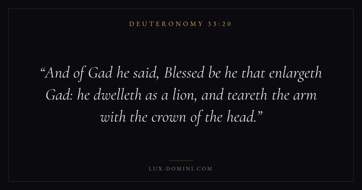 And of Gad he said, Blessed be he that enlargeth Gad: he dwelleth as a lion, and teareth the arm with the crown of the head.