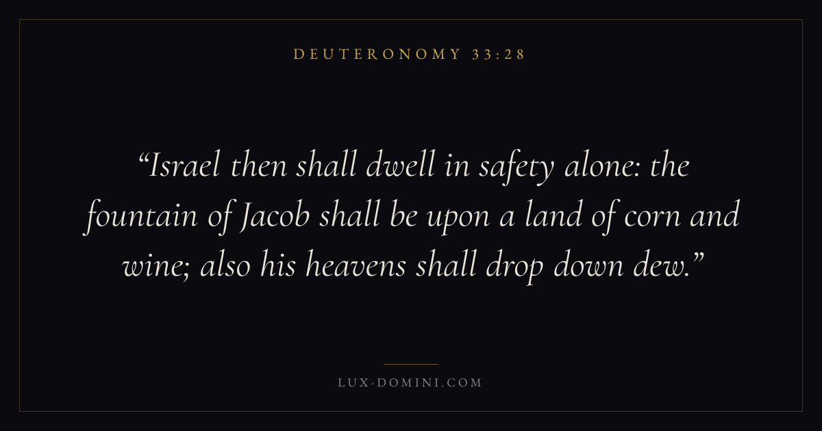 Israel then shall dwell in safety alone: the fountain of Jacob shall be upon a land of corn and wine; also his heavens shall drop down dew.