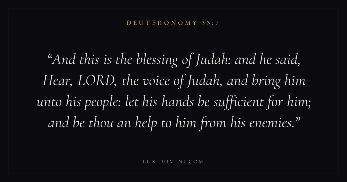 And this is the blessing of Judah: and he said, Hear, LORD, the voice of Judah, and bring him unto his people: let his hands be sufficient for him; and be thou an help to him from his enemies.