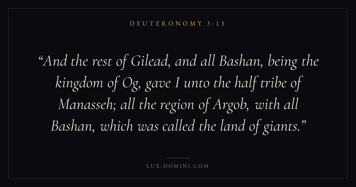 And the rest of Gilead, and all Bashan, being the kingdom of Og, gave I unto the half tribe of Manasseh; all the region of Argob, with all Bashan, which was called the land of giants.
