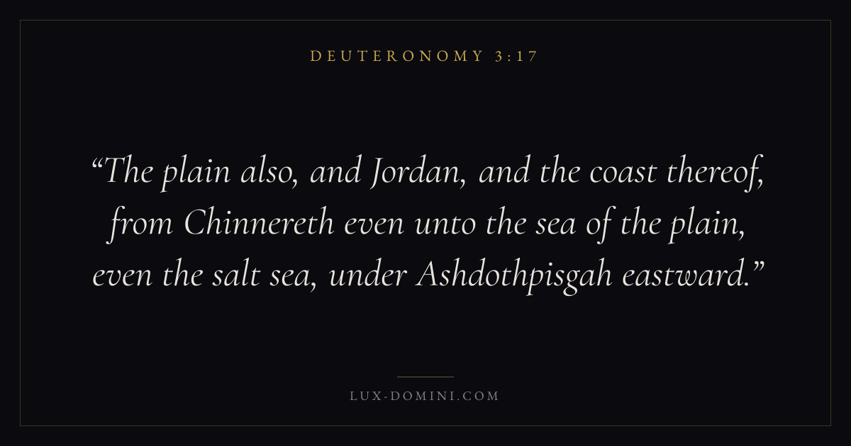 The plain also, and Jordan, and the coast thereof, from Chinnereth even unto the sea of the plain, even the salt sea, under Ashdothpisgah eastward.