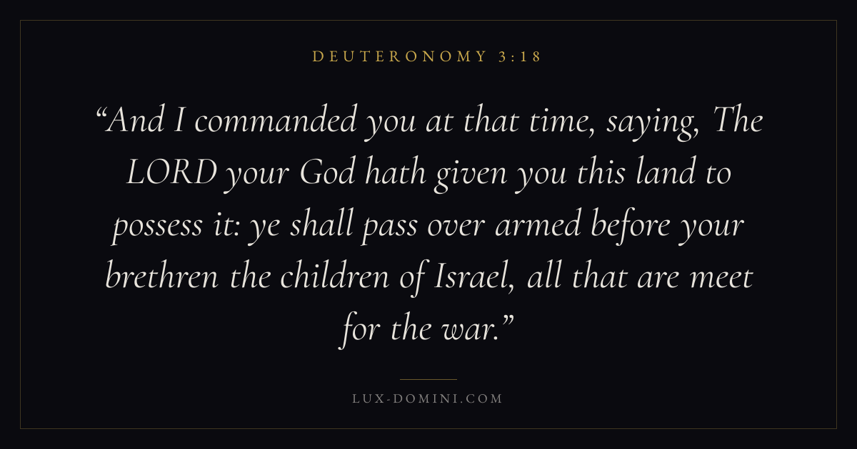 And I commanded you at that time, saying, The LORD your God hath given you this land to possess it: ye shall pass over armed before your brethren the children of Israel, all that are meet for the war.