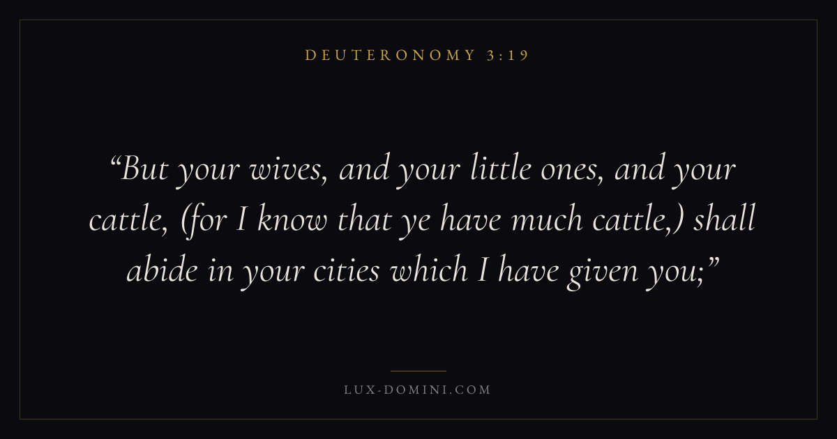 But your wives, and your little ones, and your cattle, (for I know that ye have much cattle,) shall abide in your cities which I have given you;
