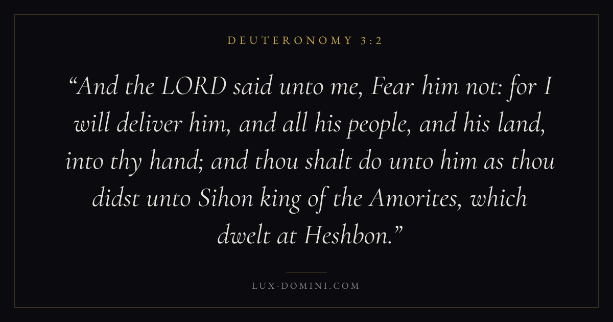 And the LORD said unto me, Fear him not: for I will deliver him, and all his people, and his land, into thy hand; and thou shalt do unto him as thou didst unto Sihon king of the Amorites, which dwelt at Heshbon.