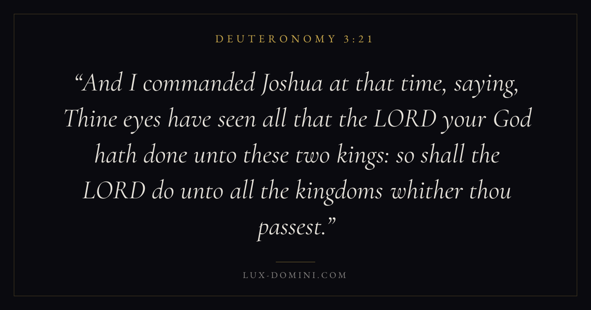 And I commanded Joshua at that time, saying, Thine eyes have seen all that the LORD your God hath done unto these two kings: so shall the LORD do unto all the kingdoms whither thou passest.
