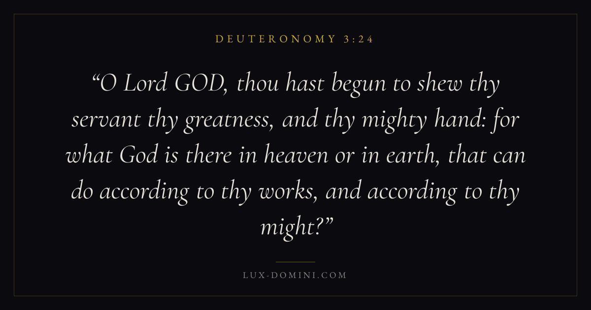 O Lord GOD, thou hast begun to shew thy servant thy greatness, and thy mighty hand: for what God is there in heaven or in earth, that can do according to thy works, and according to thy might?