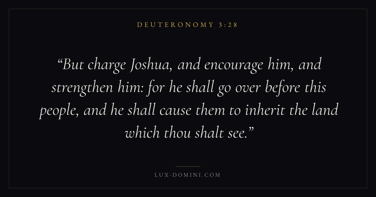 But charge Joshua, and encourage him, and strengthen him: for he shall go over before this people, and he shall cause them to inherit the land which thou shalt see.