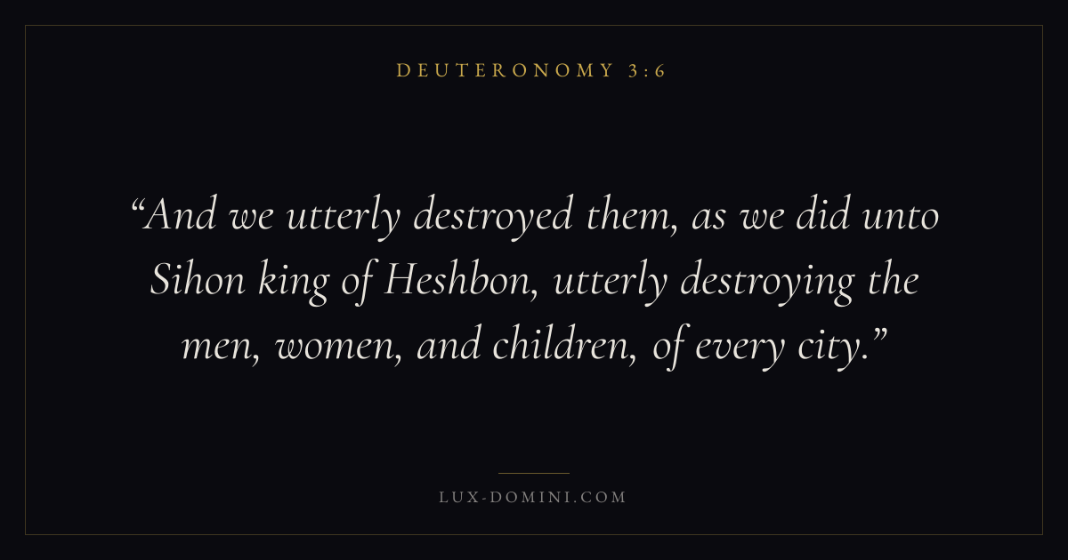 And we utterly destroyed them, as we did unto Sihon king of Heshbon, utterly destroying the men, women, and children, of every city.