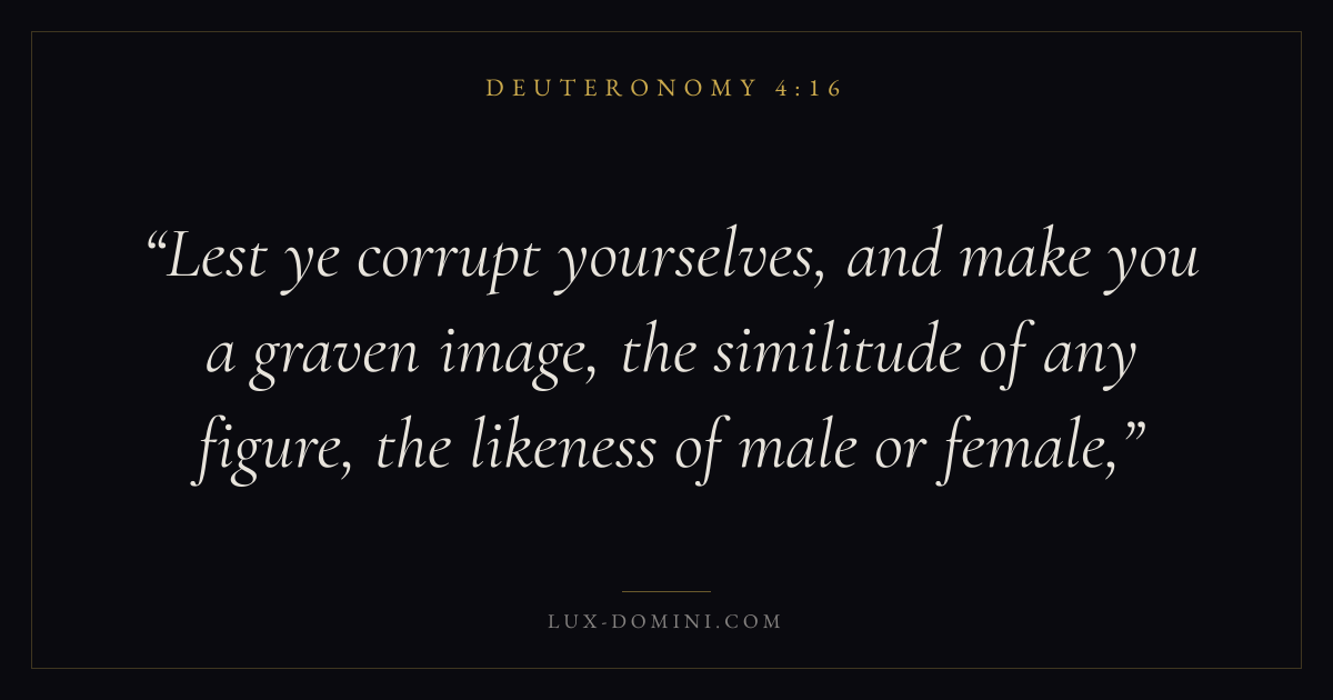 Lest ye corrupt yourselves, and make you a graven image, the similitude of any figure, the likeness of male or female,