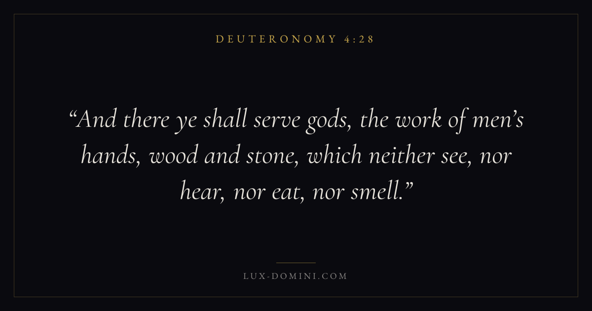 And there ye shall serve gods, the work of men’s hands, wood and stone, which neither see, nor hear, nor eat, nor smell.